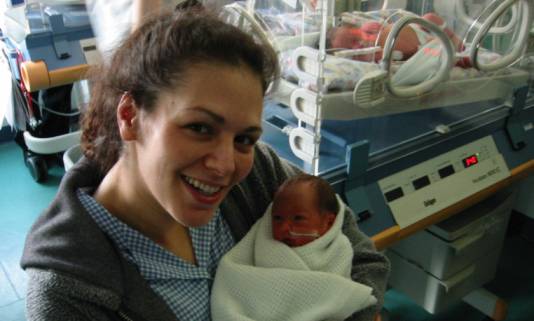 One day later, Jane with Katie – Talia is in the incubator behind